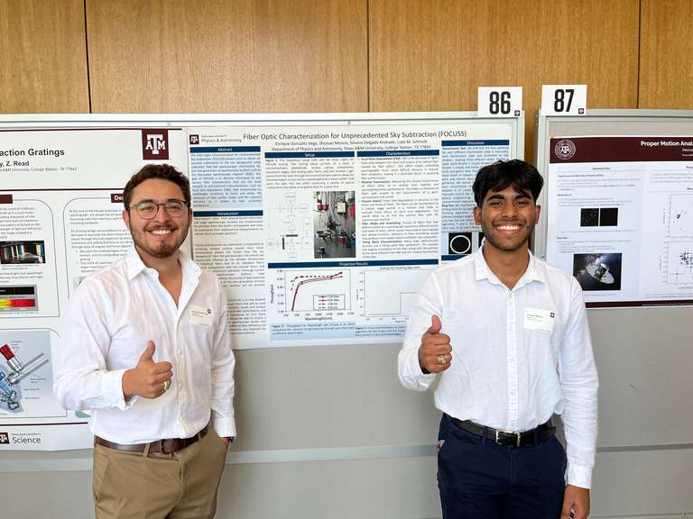 The Department of Physics and Astronomy and the Mitchell Institute for Fundamental Physics and Astronomy at Texas A&M University is pleased to host the Aggie Scholarships for Technology Advancements in Astronomical Research (AggieSTAAR) program. During the 10-week summer period, students conduct astronomical research or complete an instrumentation project with Texas A&M faculty and research staff, participate in weekly seminars and group discussions, and attend an observing trip to McDonald Observatory. Questions about the program may be addressed to the AggieSTAAR program director Dr. Jennifer Marshall at marshall@tamu.edu.